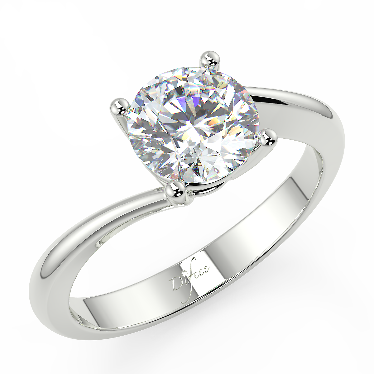 圓形四爪扭臂鑽石訂婚戒指